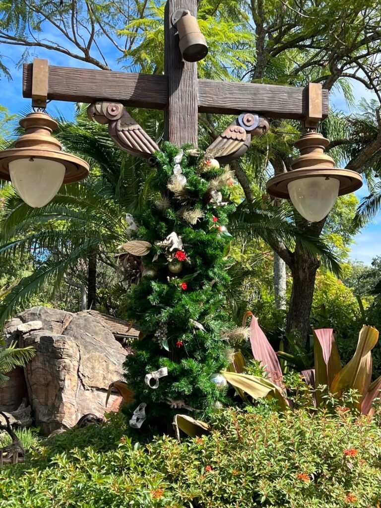 Animal Kingdom’s holiday decorations are some of the most creative across all of Walt Disney World. Each land features its own unique touches, inspired by nature and thoughtfully designed to reflect different cultural traditions. You’ll find rooftop luminaries and woven garlands in Discovery Island, glowing lantern displays in Asia, and bold, colorful handcrafted décor in Africa. Everywhere you go, there’s something new to admire!